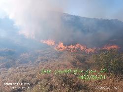 آتش سوزی در مراتع روستای اسپه میزه وجنگلهای دارساوین، با حضور به موقع همکاران شهرستان سردشت مهار شد.